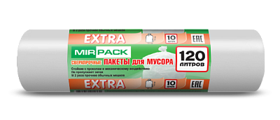 Мешки для мусора 120 литров, 14 мкм, ПНД, 10 шт. белые, 70х110 см, EXTRA