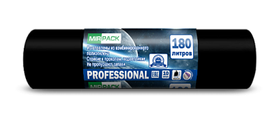 Мешки для мусора 180 литров, 30 мкм, ПВД, в рулоне 10 штук, черные, 2 слоя, 93x110 см, Professional
