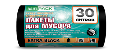 Мешки для мусора 30 л, 35 мкм, ПВД, 20 шт. черные, плотные, 50x60 см