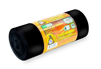 Мешки для мусора 300 л, 70 мкм, ПВД, в рулоне 10 штук, плотные, строительные, черные, 2 слоя, 100x140 см