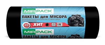 Мешки для мусора 60л, 8 мкм, в рулоне 25 штук, черные, 60х80 см, ХИТ
