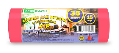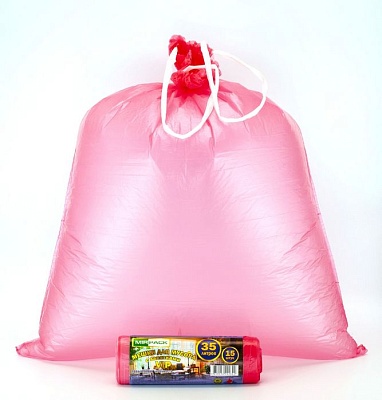 Пакеты для мусора с завязками 35 л, 15 мкм, 15 шт, ПНД, красные
